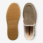 Luxury meets comfort in this slipper, where the ease of a slip-on design is paired with the warmth of a full shearling lining. Supple leather or suede extends from the upper to the midsole, creating a sleek, clean silhouette. Thoughtfully designed for both style and comfort, it transforms everyday lounging into an elevated experience, offering a relaxed fit with a slightly roomier feel and a flexible rubber sole for effortless wear.