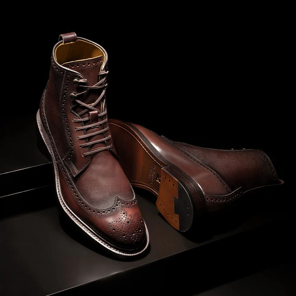 You are looking at: Allen Edmonds Maddox Reserve Wingtip Dress Boots Chili Caviar (8532)