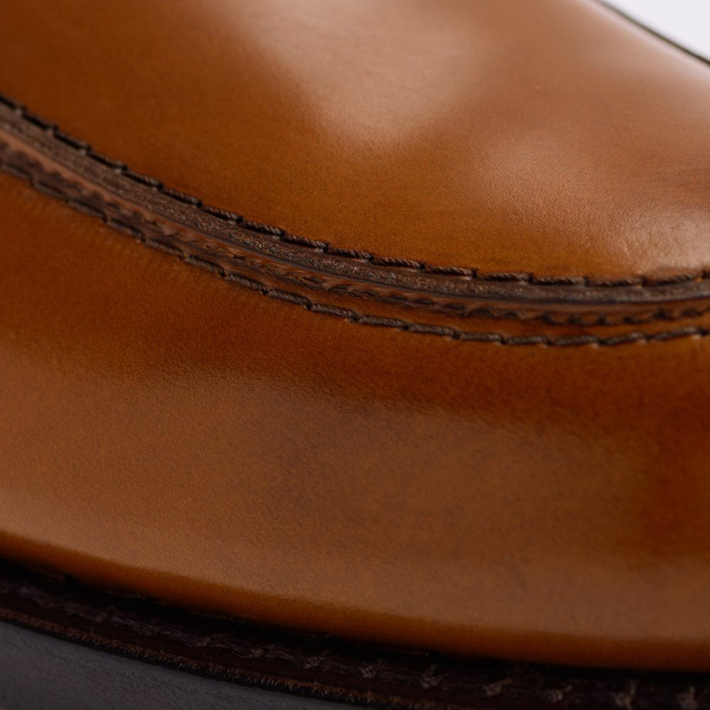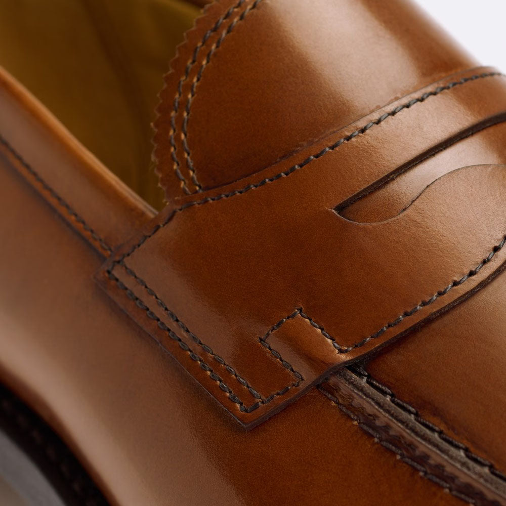 A timeless icon in the Allen Edmonds collection, the Miller is a classic apron toe penny loafer with split reverse Goodyear welt construction, Ilcea Betis or Polaris Maremma crust calfskin upper, leather lining with gold foil Reserve logo, CustomCork™ insoles and vegetable-tanned leather soles. Handmade in Port Washington, Wisconsin. Recraftable services available by AE on this style. Allen Edmond's most popular 2041 shoe last.