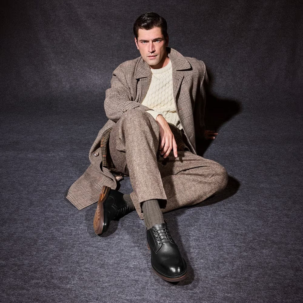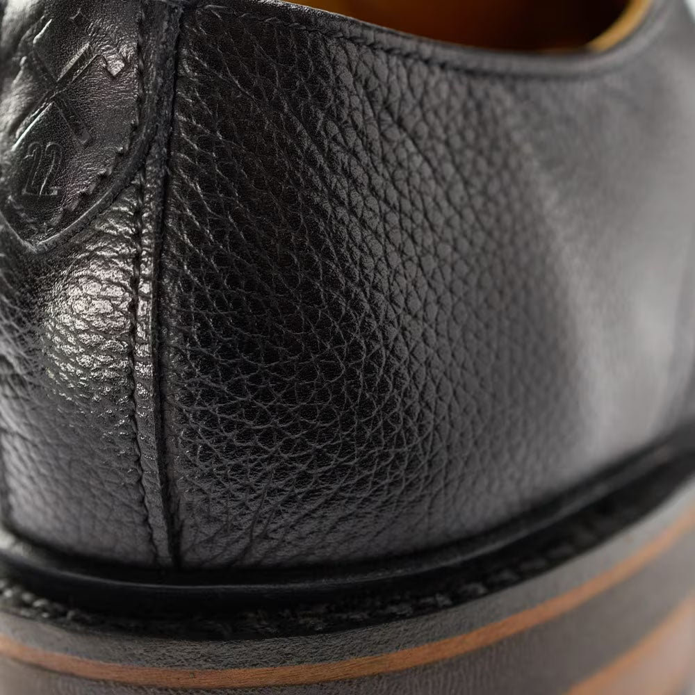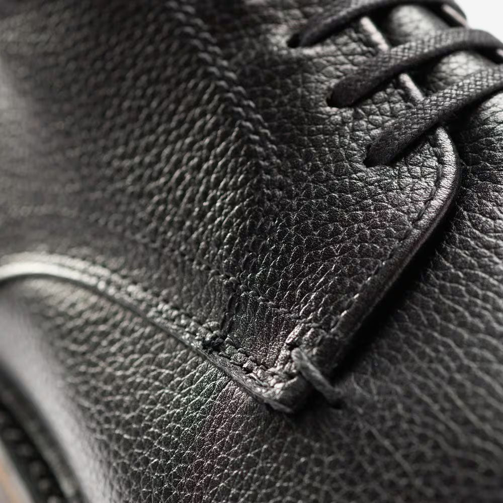 Crafted from supple Italian pebble-grain leather with a hand-finished patina, it features a split reverse Goodyear welt, semi-aniline leather lining, and CustomCork™ insoles with Poron cushioning. Flexible Lactae Hevea lug soles ensure comfort and durability, while small-batch production and the ability to be recrafted make each pair a lasting investment in classic American craftsmanship.