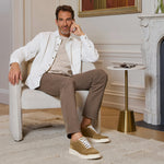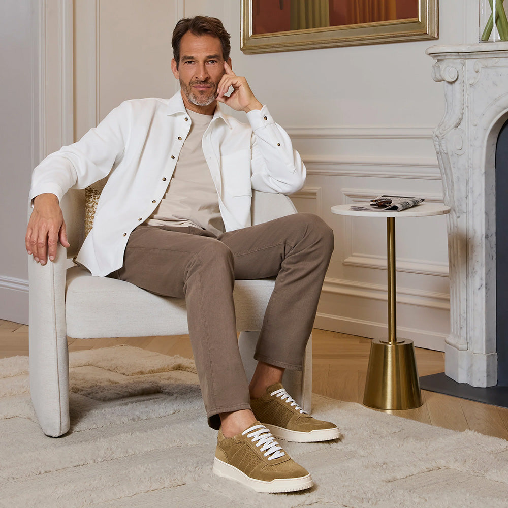 The Cristo lace-up sneaker is designed for effortless mix-and-match versatility. Crafted in tumbled calf, smooth nappa leather, or soft suede, it features distinctive zigzag leather detailing that creates a sharp, angular pattern. An understated logo adds a refined finishing touch, while a removable footbed, smooth leather lining, and durable rubber outsole ensure all-day comfort. Made in Italy with weatherproof construction, this sneaker balances modern design with everyday practicality.