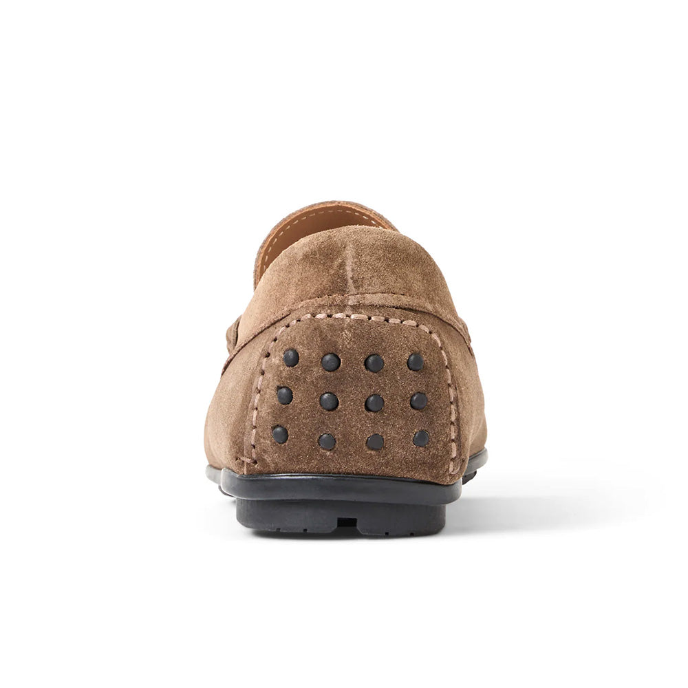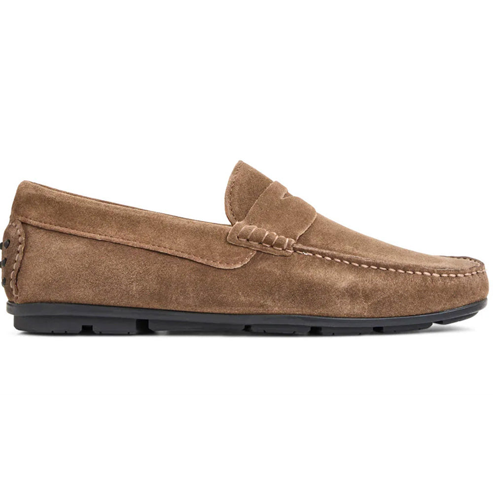 Aquatalia Enzo Suede Penny Driving Shoes Taupe