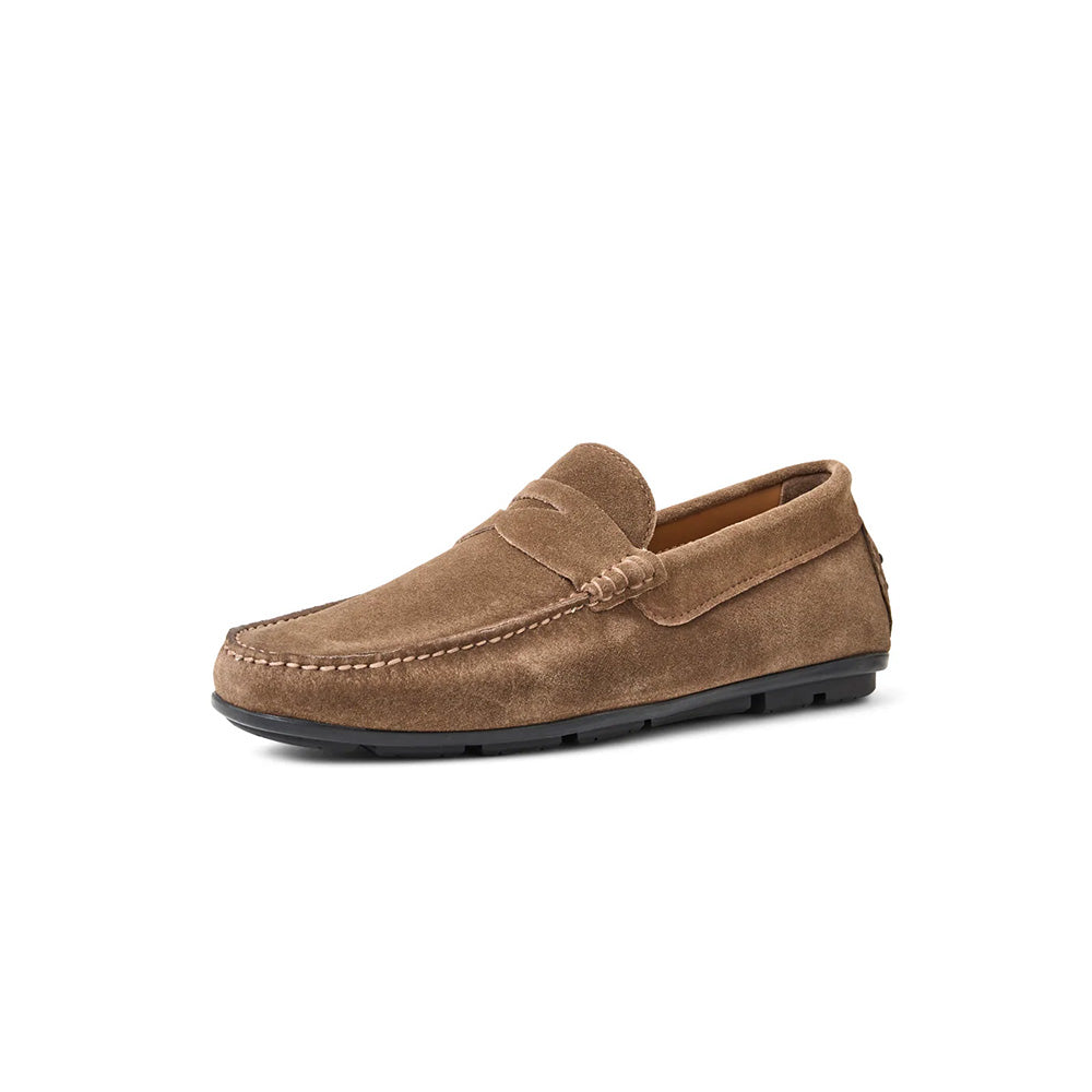 Blending sophistication with everyday comfort, the Enzo driving moccasin is crafted from water-resistant suede, making it a versatile choice for any condition. Designed with classic penny slots atop rounded toes, it rests on a distinctive rubber outsole that provides superior traction. Finished with a leather lining and cushioned foam insoles, this Italian-made shoe ensures both style and ease with every step.