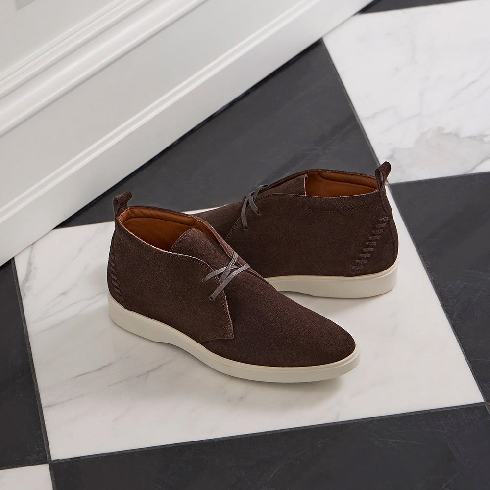 Designed for effortless wear, the Florian boot features a back loop for easy on and off and woven stitching that adds subtle dimension to its refined silhouette. Crafted from soft suede, it’s finished with a comfortable round-toe shape and a smooth leather lining for all-day ease. A durable rubber outsole and weatherproof construction make it a reliable choice, while Italian craftsmanship ensures lasting quality. Perfect for weekend errands or travel, it pairs seamlessly with any off-duty look.