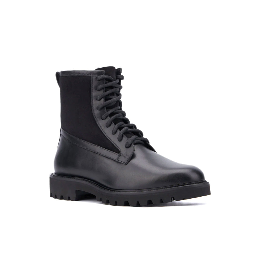 Aquatalia Gitano Leather & Shearling Lace Up Boot Black