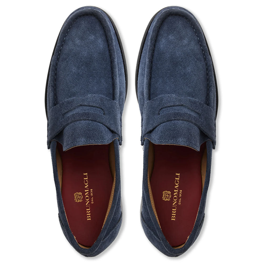 Bruno Magli Lombardo Italian Suede Penny Loafer Navy