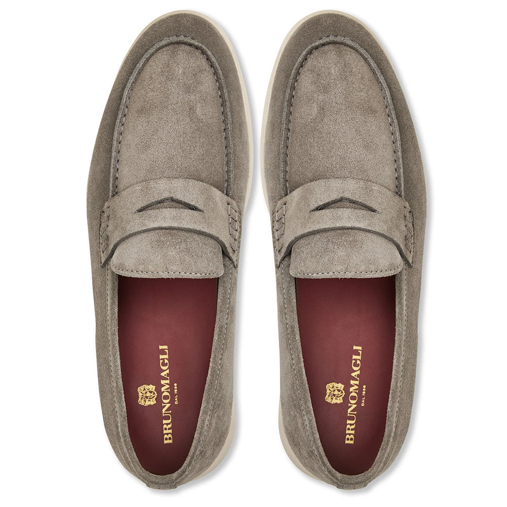 You are looking at: Bruno Magli Patrizio Italian Suede Penny Loafer Grey