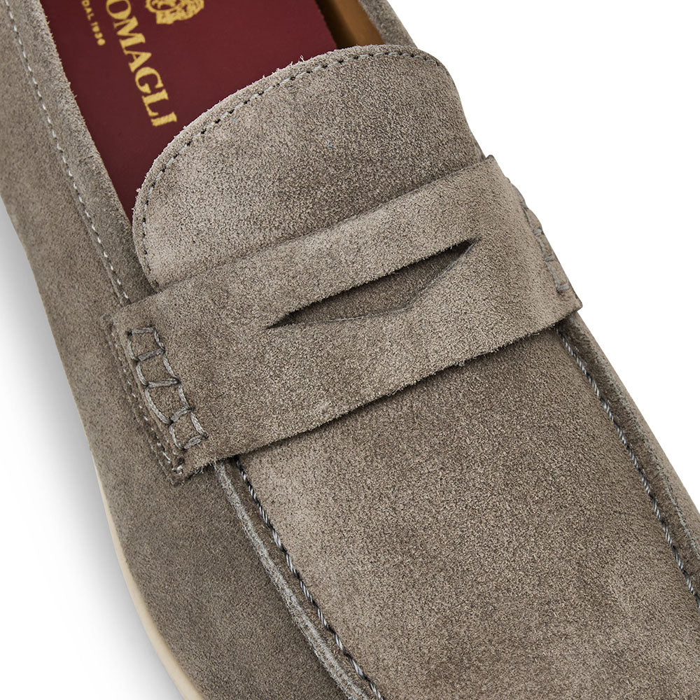 Effortlessly refined, this suede penny loafer offers a modern take on a timeless classic. Crafted in Italy with soft suede uppers and a traditional penny strap, it delivers versatile style with everyday ease. A leather outsole enhances breathability and comfort, making it an ideal choice for all-day wear.