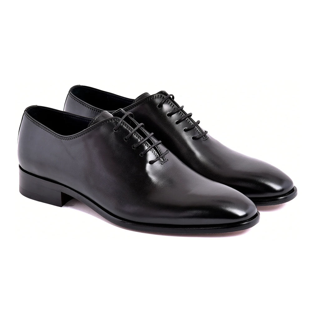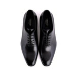 Elevate your footwear collection with these sleek black plain-toe lace-up shoes. Expertly crafted for a refined look, they embody timeless elegance and versatile style—ideal for both professional and formal settings. The minimalist design offers a polished appearance and a comfortable fit for all-day wear. Balancing sophistication with simplicity, these lace-ups are a must-have for the modern wardrobe.