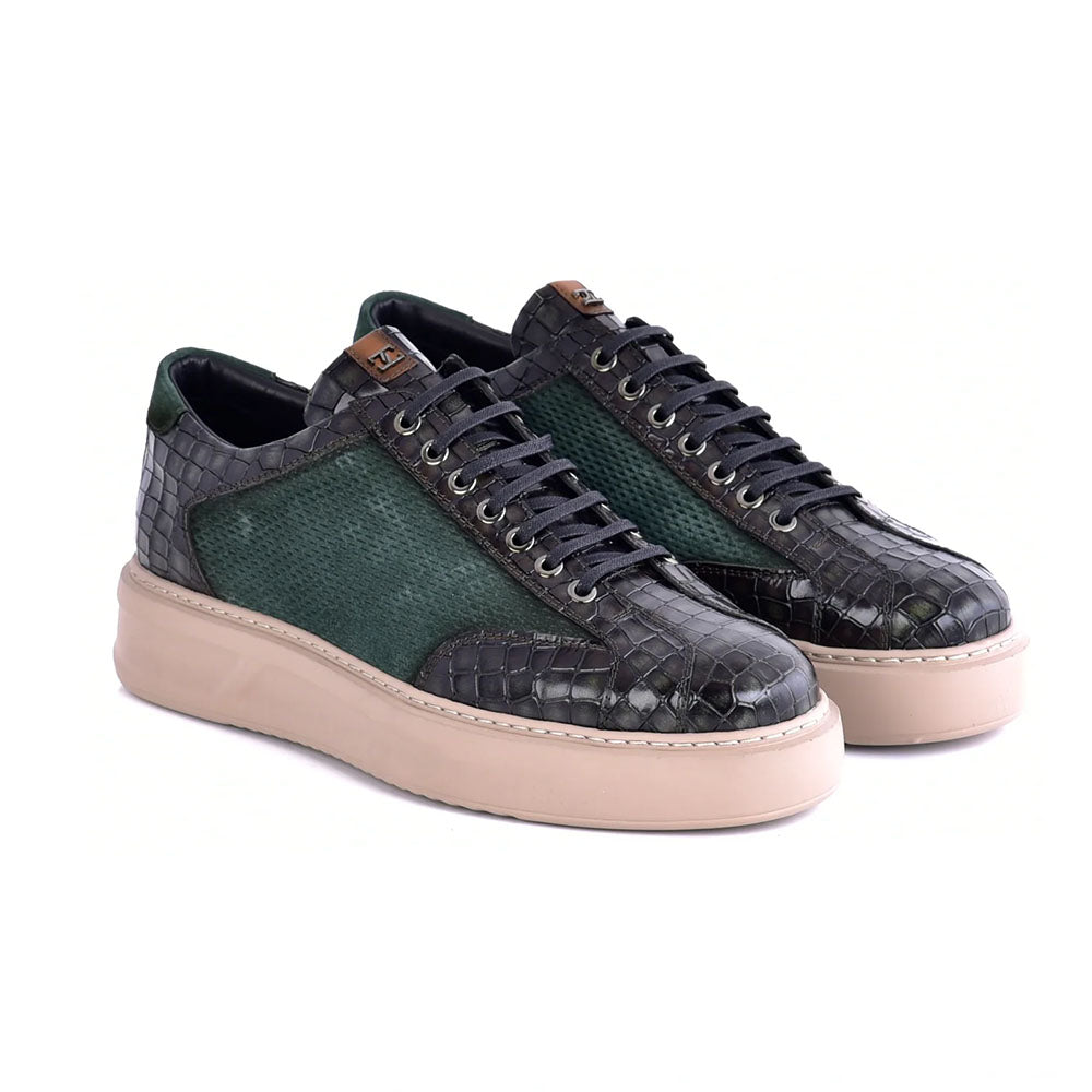 You are looking at: Corrente C000138-8492 Croco Leather Fashion Sneaker Green