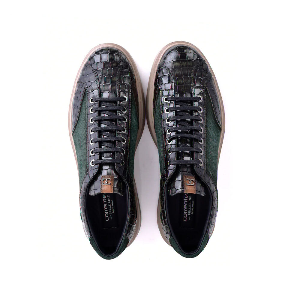 Corrente C000138-8492 Croco Leather Fashion Sneaker Green