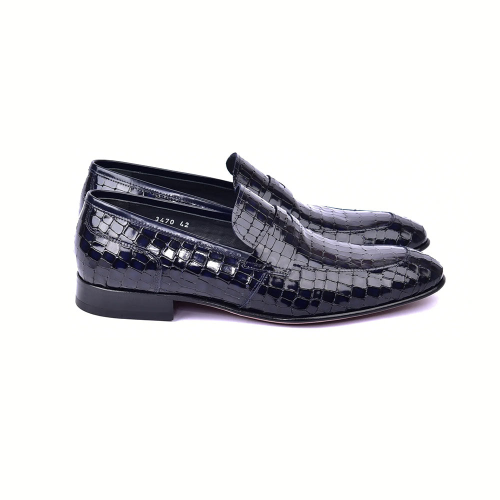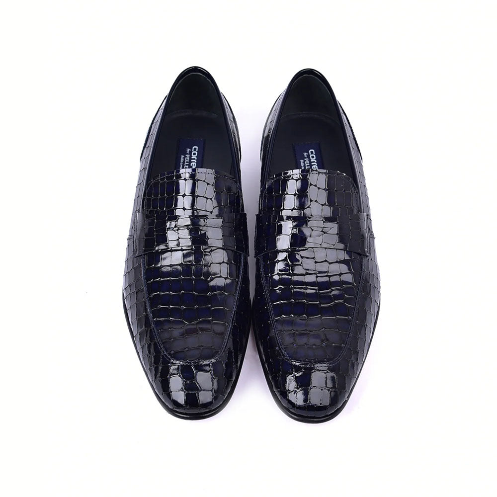 You are looking at: Corrente C125-3470 Croco Leather Loafers Dark Navy