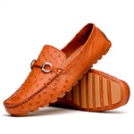 Awesome genuine ostrich skin driving shoes with gum rubber driving sole. Featuring leather lining, cushioned insole.
