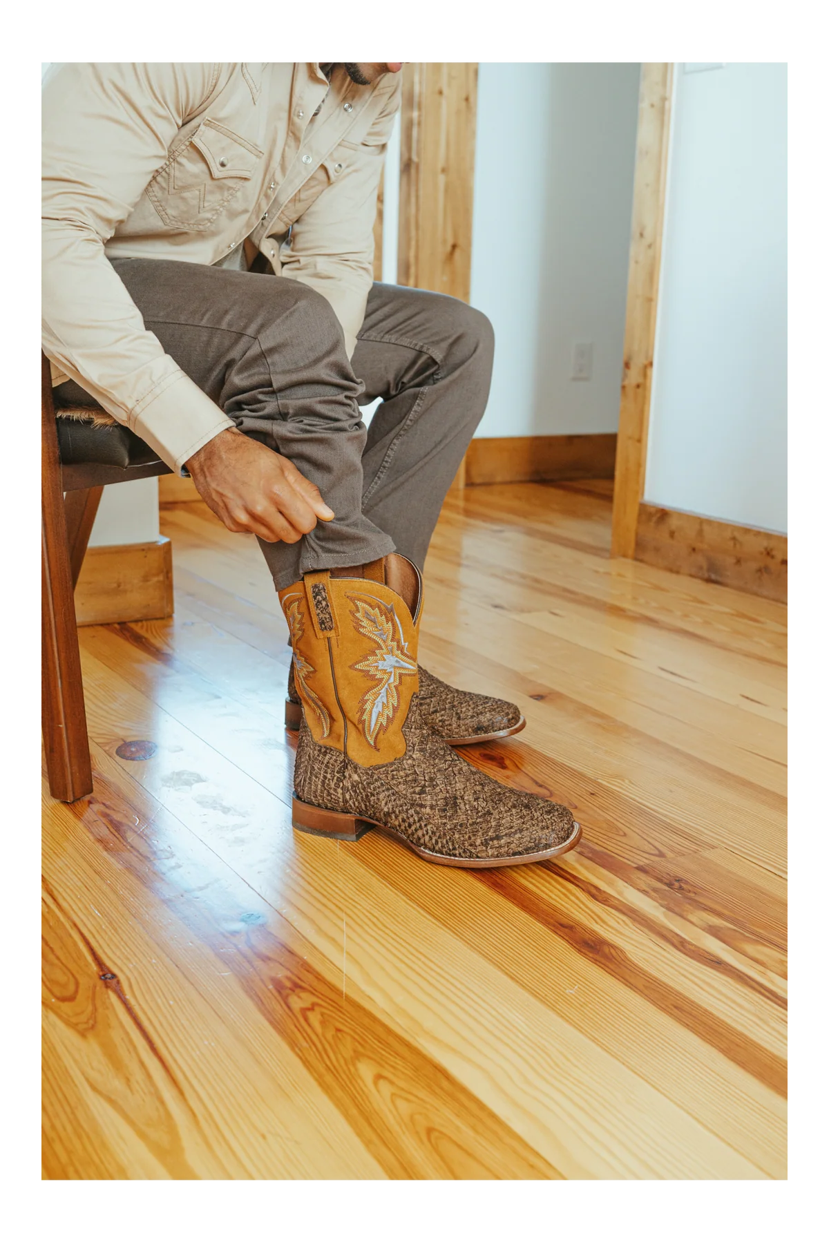 The Dan Post Dorsal is a standout boot, handcrafted from genuine Sea Bass leather with a velvety textured finish. The rich leather upper is accented by contrasting multi-row stitching and embroidery, creating a bold, refined look. Designed with an 11-inch shaft, broad square toe, 1" stockman heel, and removable Soft Strike Orthotic with antibacterial and antifungal properties, it combines style and all-day comfort with a durable leather outsole.