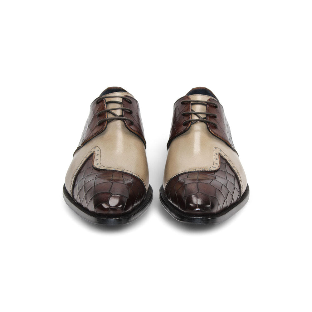 Duca by Matiste Valentano Croc Print & Leather Shoes Chocolate / Beige