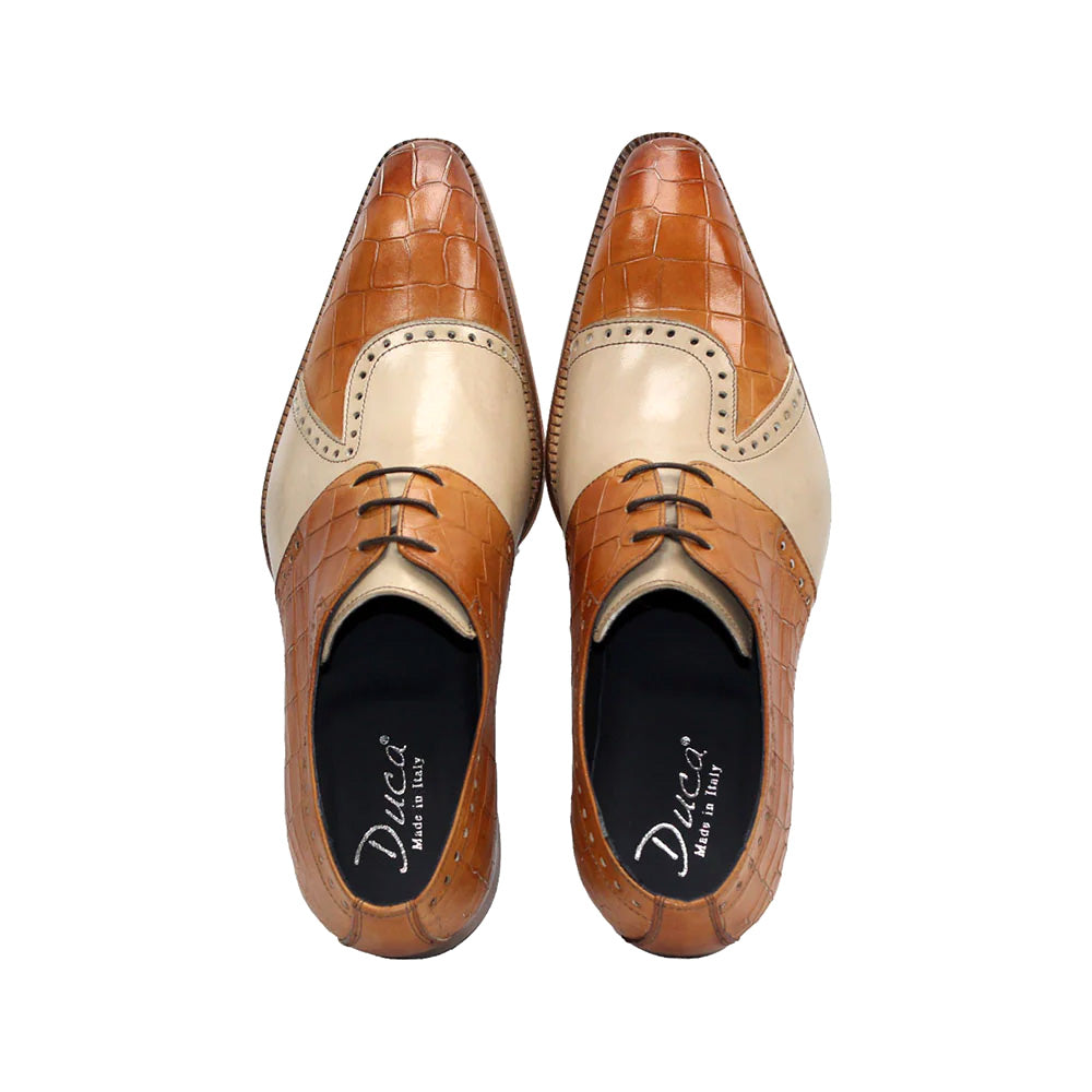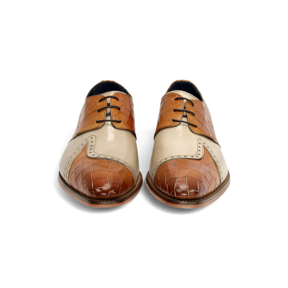Duca by Matiste Valentano Embossed Croco Leather Shoes Cognac / Beige