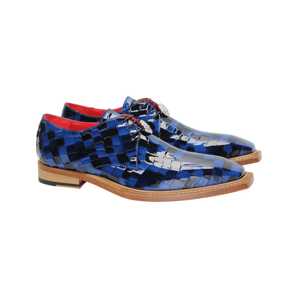 You are looking at: Emilio Franco Couture Santo Patent Croco Print Shoes Dark Blue Combo