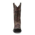The Ashton embodies vintage charm with intricate embroidery and a distinctive aged finish. Crafted from 100% genuine full-grain leather, it delivers a rugged yet timeless look. Featuring a 13" shaft, 1½" block heel, square toe, and durable leather outsole, this boot pairs classic craftsmanship with bold character.