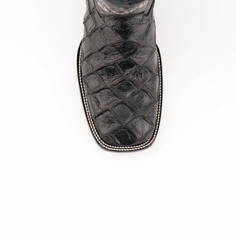 Ferrini Bronco 43393-04 Pirarucu Print Square Toe Cowboy Boots Black