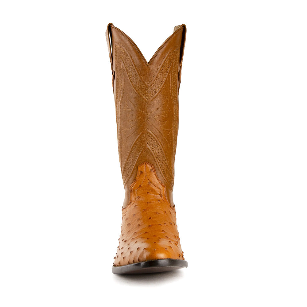 Ferrini Colt 10111-02 Ostrich Quill Round Toe Cowboy Boots Cognac