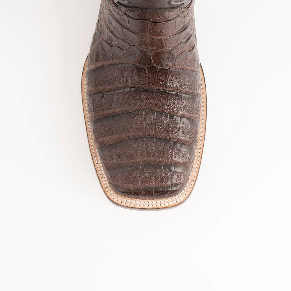 Ferrini Dakota 12493-09 Caiman Belly Square Toe Cowboy Boots Chocolate