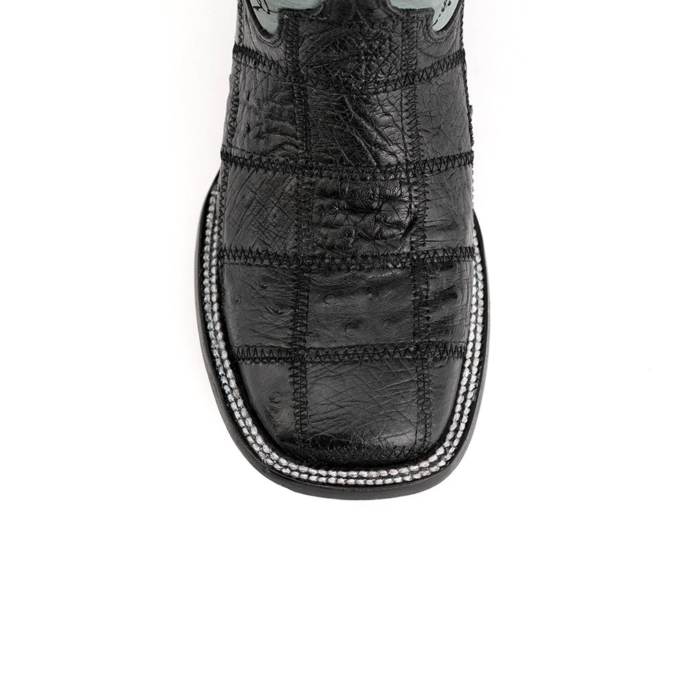 Ferrini Pinto 11693-04 Ostrich Patch Square Toe Cowboy Boots Black
