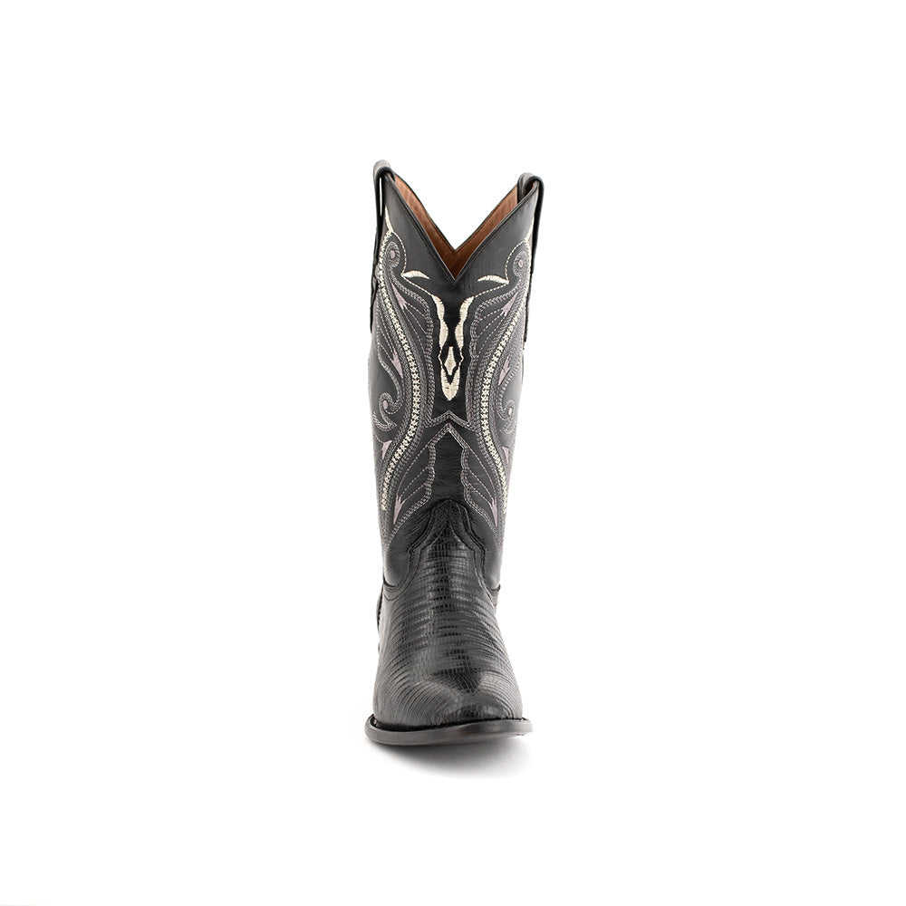 Stand out from the crowd with these exotic boots, featuring a teju lizard vamp and an intricately stitched shaft for bold, distinctive style.