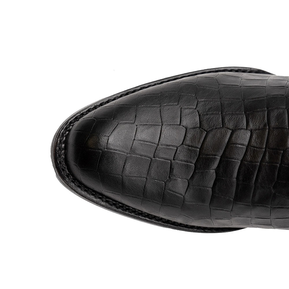 The Winston offers a modern twist on the classic cowboy boot with a convenient zipper for easy wear. Crafted from genuine cow leather with a belly alligator print and a premium cowhide shaft, it’s a versatile boot suited for any occasion.