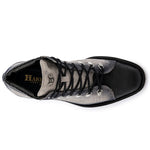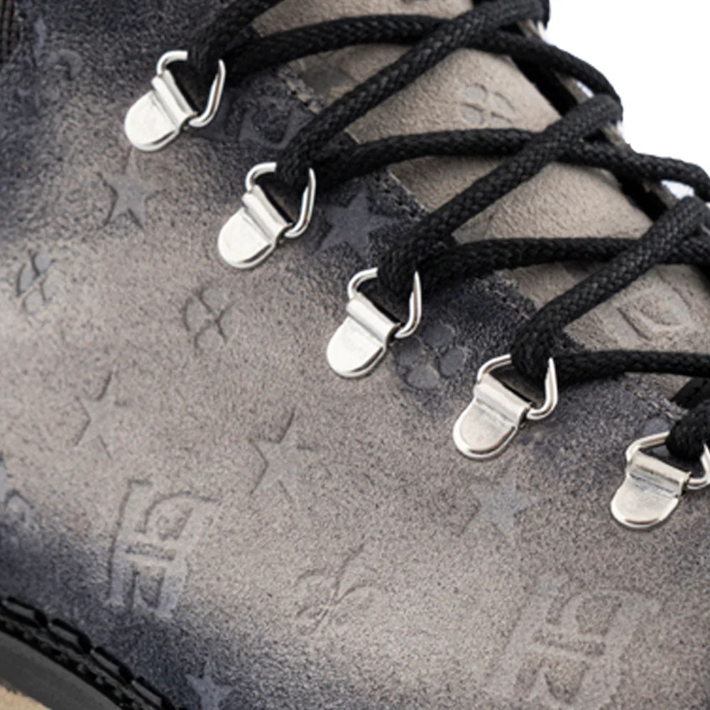 A robust yet refined design defines this model, created for those who seek both style and individuality. Crafted from hand-shaped Harris suede with a monogram print, it is accented by a smooth leather tongue with a crocodile effect. The padded edge provides lasting comfort, while nickel details and a rugged rubber tread sole ensure stability and durability.