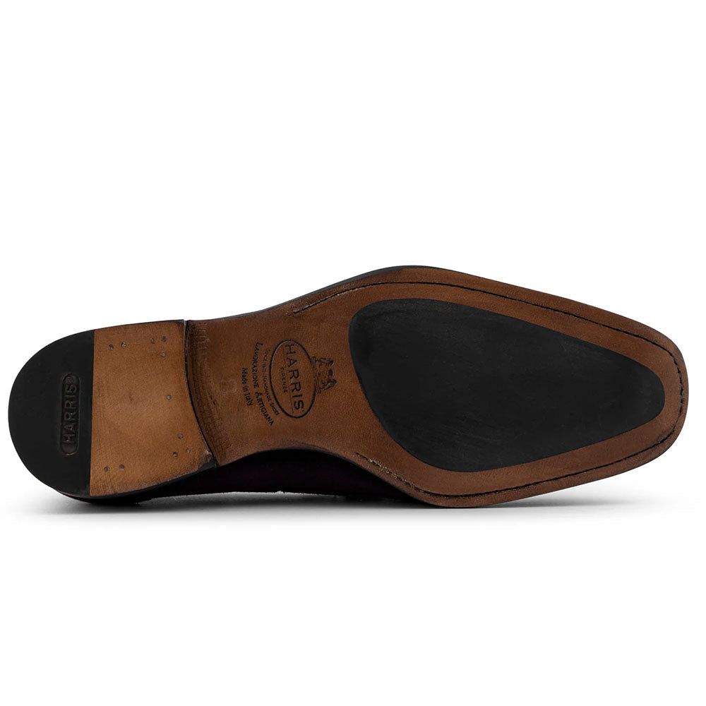 Made from soft, hand-shaded suede with matching pom-poms, this shoe offers light, contemporary elegance. Blake Rapid construction and a leather sole with rubber insert ensure signature Harris comfort and quality.