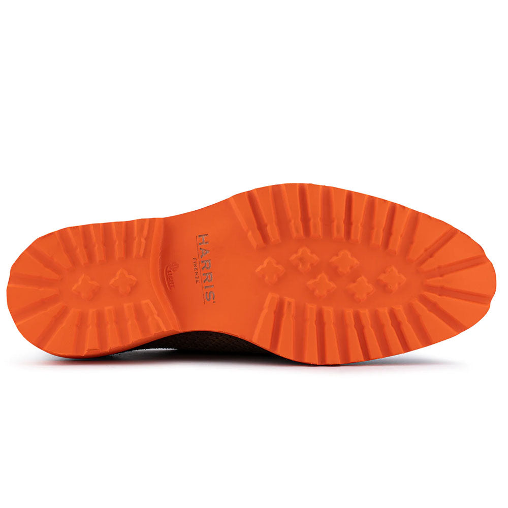 A model that blends luxury with personality, crafted from genuine brown python leather and hand-faded with stitched details for a unique artisanal finish. The Blake Rapid construction ensures both strength and comfort, while the orange-toned rubber sole adds bold character and a modern edge.