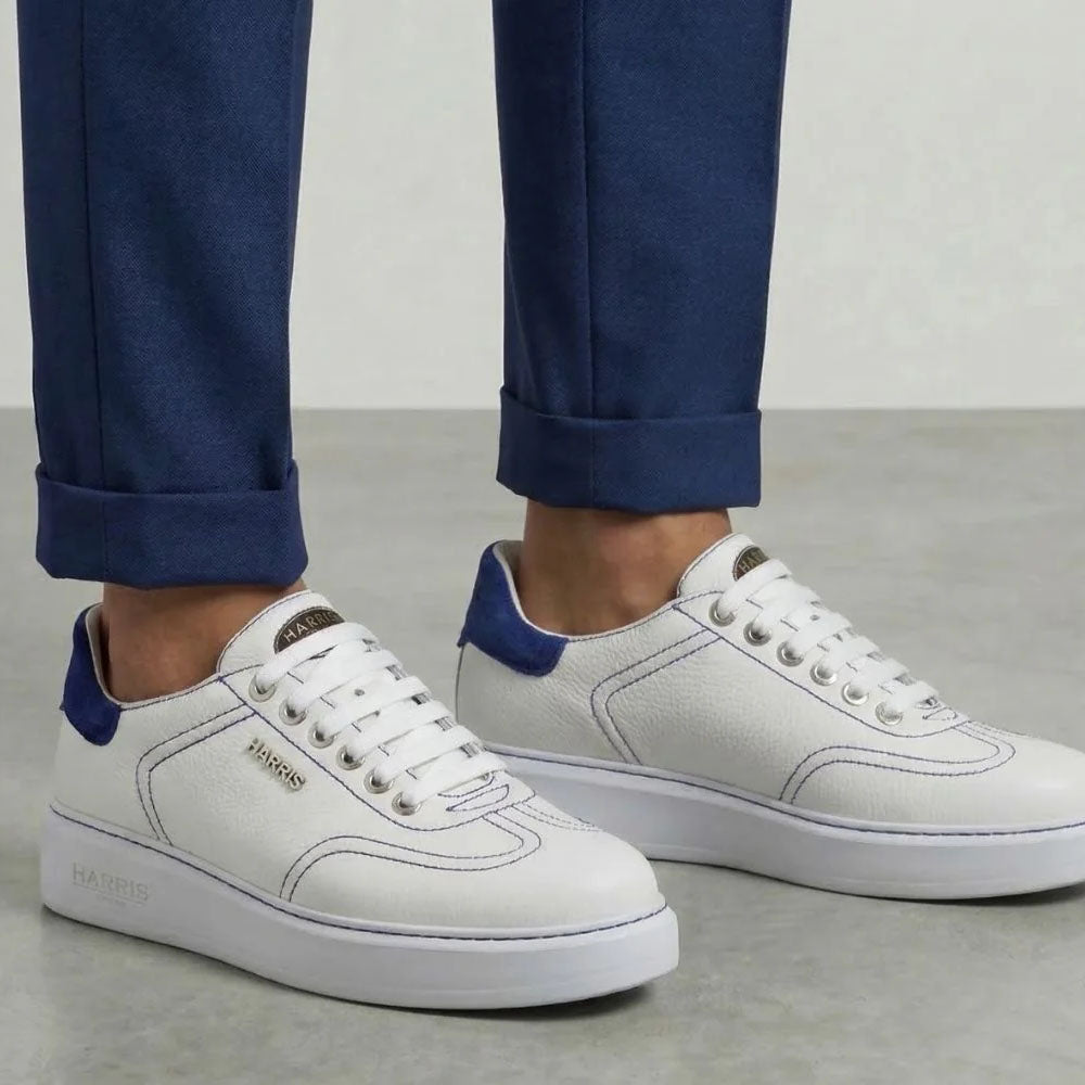 Harris Firenze 1913 Leather & Suede Comfort Sneakers White / Blue