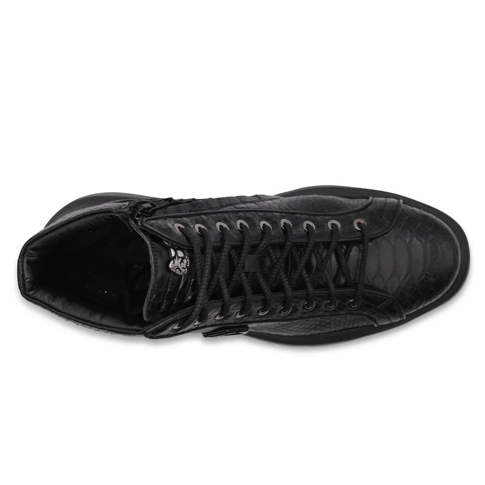 A symbol of craftsmanship and modern sophistication, this black python leather ankle boot combines premium materials with exclusive detailing. The Innovazione rubber sole ensures all-day comfort, while nickel accents and a black metal logo lend a touch of subtle, refined elegance.
