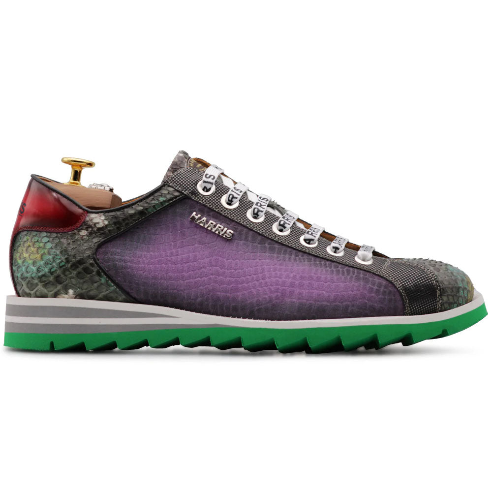 Harris Firenze 1913 Python & Printed Suede Sneakers Green / Lilac