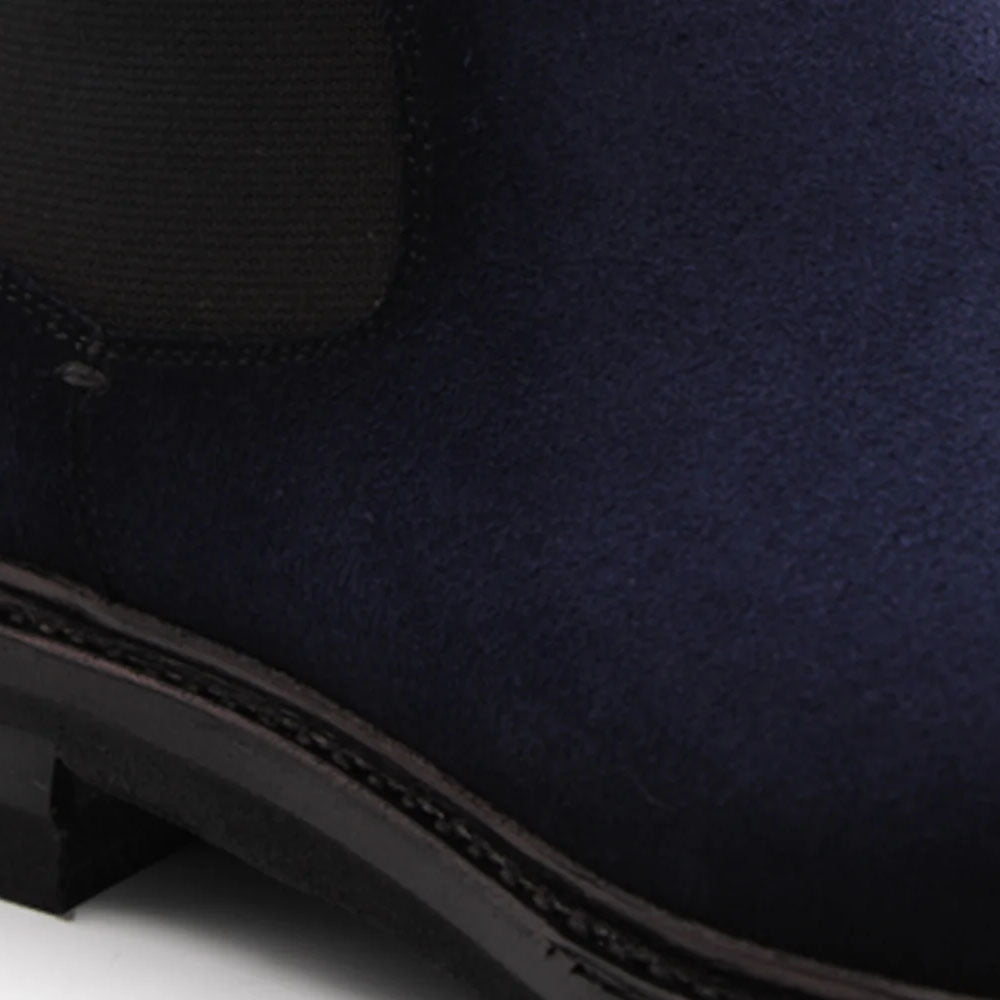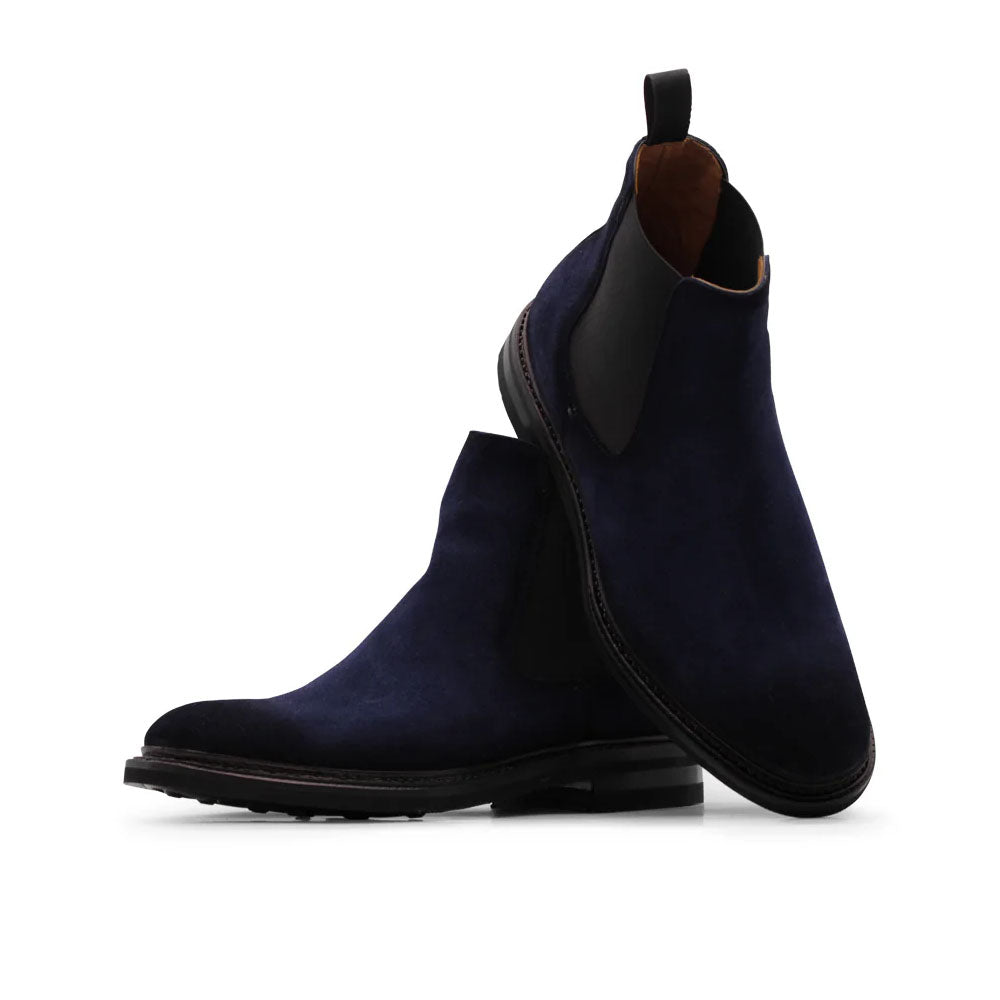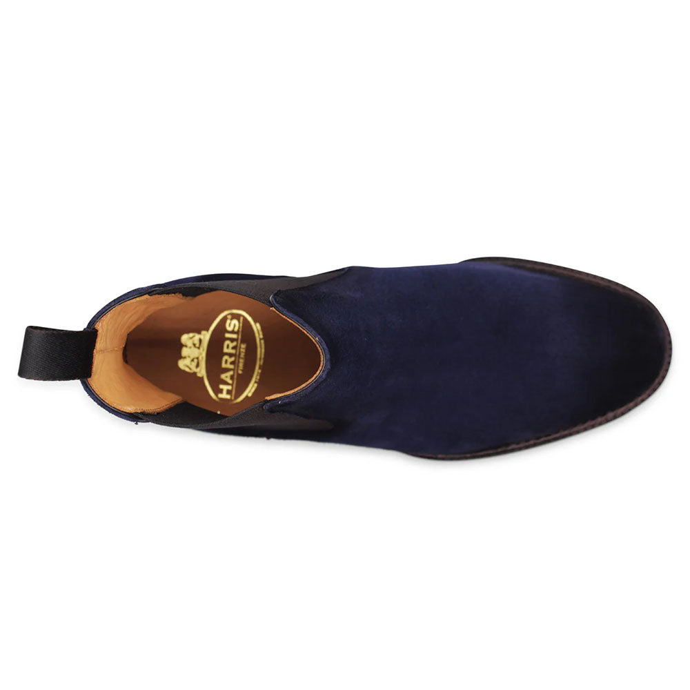 Blue suede with artisanal shading creates a rich, deep finish in this timeless design. The side elastic ensures a perfect fit, complemented by a Dainite rubber sole and Blake Rapid construction for durability and comfort. A Harris classic with a contemporary spirit.