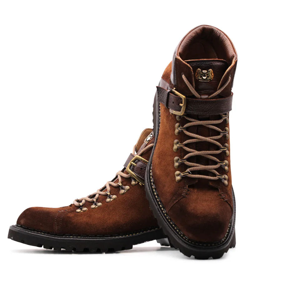 Suede ankle boot in a burnished shade with hand-applied dark gradients, leather detailing, and a rugged lug sole. The Blake Rapid construction provides the ideal balance of durability and refined craftsmanship.