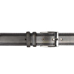 Men's stitched calfskin belt with smooth edge and silver-tone metal buckle. A refined handmade accessory, perfect for completing any look.