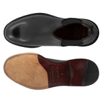 Men's Chelsea boot in shiny calfskin, handcrafted with Goodyear Welted construction for lasting comfort. Features elastic side panels, a smooth upper, and a buffalo leather sole that’s shock and water resistant. Perfect for elevating casual or formal looks alike. Made in Italy.