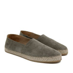 Men’s espadrilles crafted from soft green suede with a traditional silhouette, featuring a hand-stitched woven rope sole and rubber tread. Lightweight and breathable, they’re perfect for warm-weather wear — ideal for daily looks, weekend outings, or relaxed urban style.