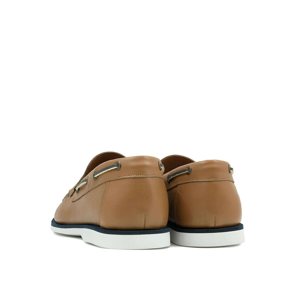 Boat shoe crafted from soft leather, featuring hand-stitched detailing and a two-tone non-slip sole. Finished with an interchangeable calfskin insole for maximum comfort without compromising on elegance. Made in Italy.