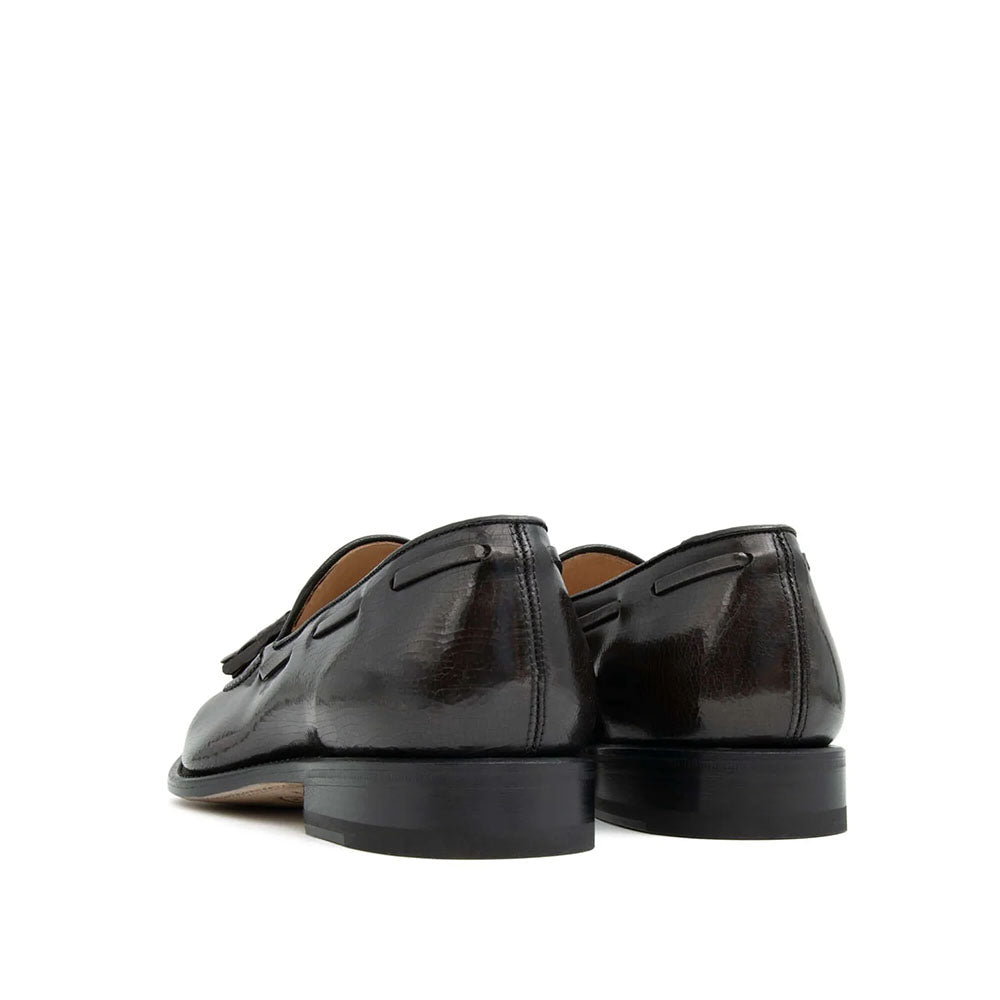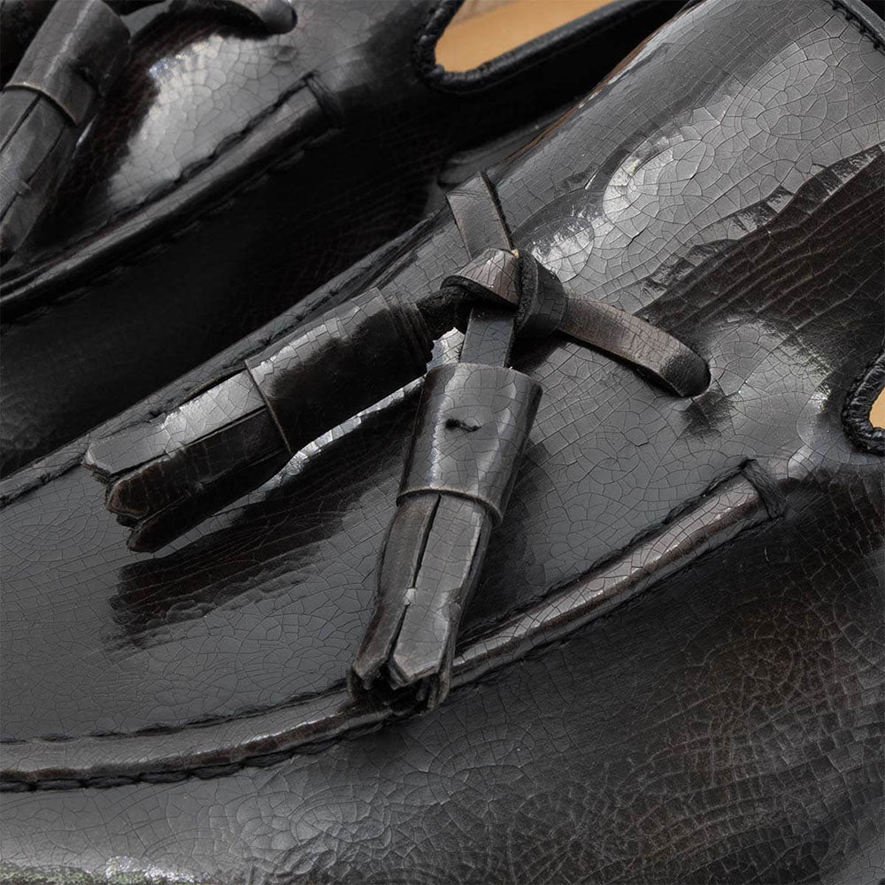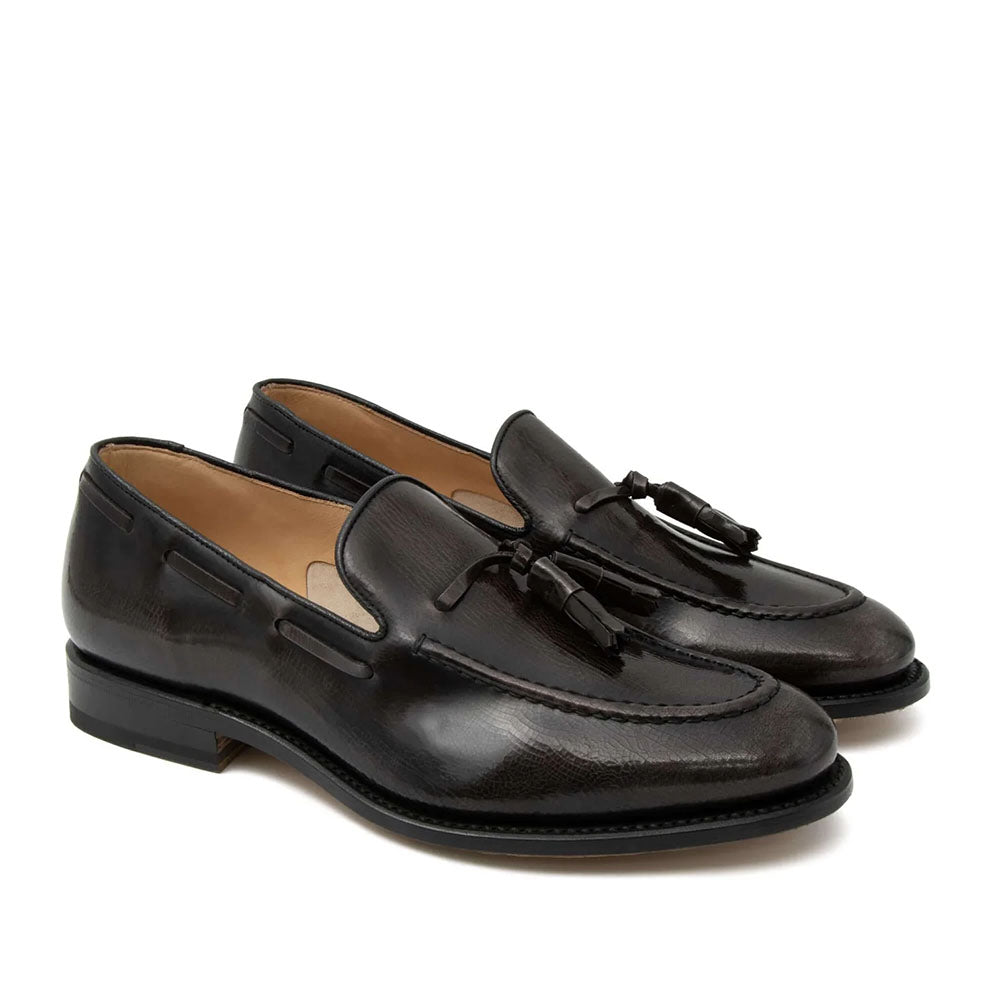 This men's tassel moccasin is crafted from soft calfskin with a subtle scratched effect. Featuring Goodyear construction and a beveled leather sole for a sleek, all-season design, it pairs effortlessly with casual outfits or tailored ensembles. Made in Italy.