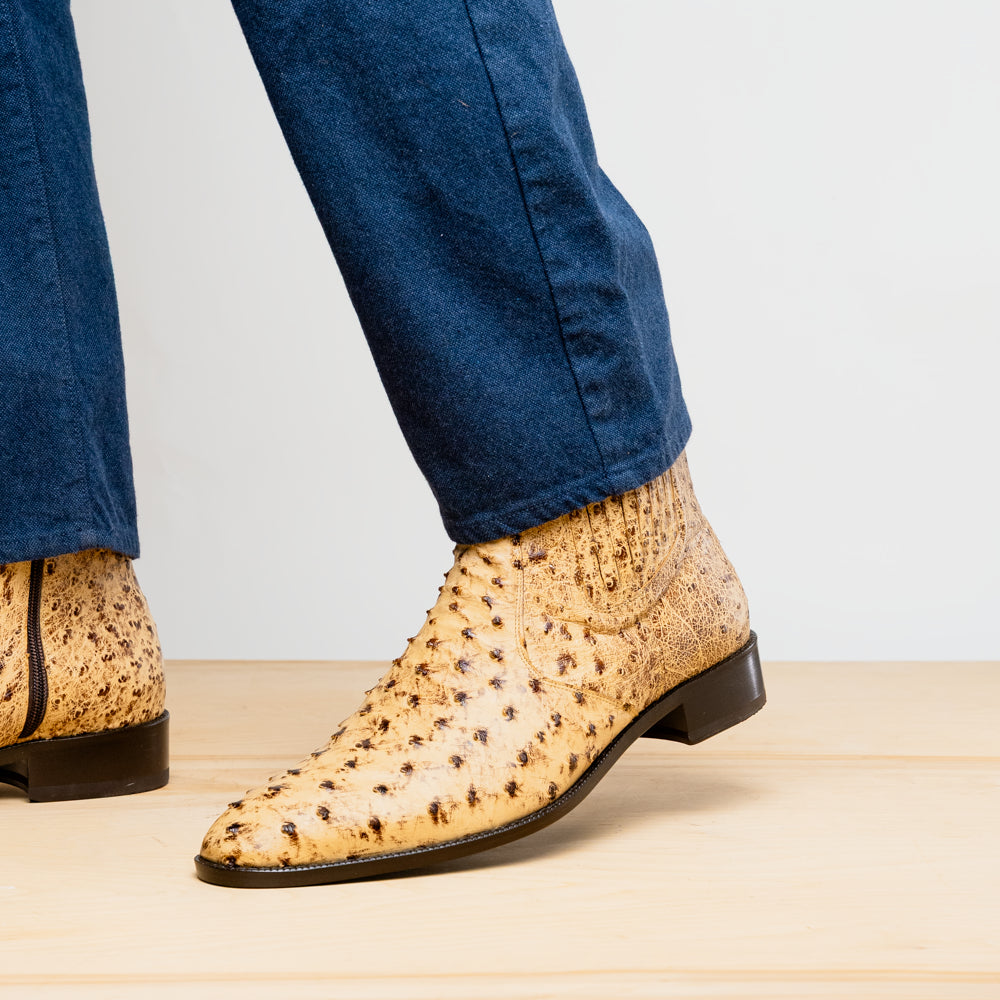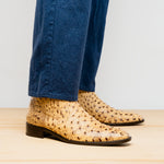 Sleek genuine ostrich quill and zip up dress style boots from Marco Di Milano. Features leather lining cushioned insole and a full leather sole.