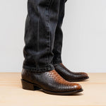The Kansas boot is a fresh take on classic Western style, blending authentic character with refined detail. Featuring a traditional round toe silhouette, it’s meticulously handcrafted with genuine python leather on the vamp and premium full-grain leather on the shaft—combining rich texture with rugged elegance. Detailed stitching and our signature red interior lining add a distinctive touch, making this boot equally suited for days on the ranch or nights in the city.