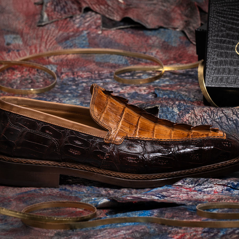 You are looking at: Mauri 4770/1 Baby Crocodile & Hornback Loafer Sport Rust / Brandy