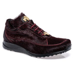 The Mauri 8900/2 Pony sneakers feature sleek ruby red pony hair for a distinctive, textured look. Expert craftsmanship ensures a refined finish, while a flexible rubber sole provides comfort and support, making these sneakers a stylish and practical choice for everyday wear.