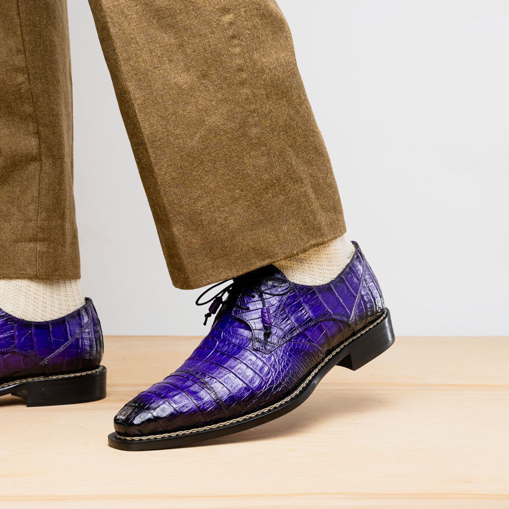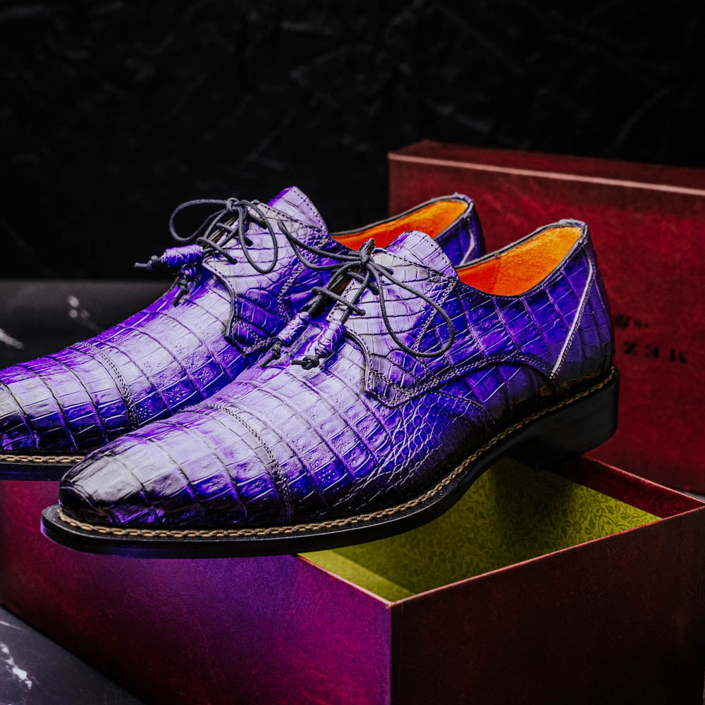 You are looking at: Mezlan Giovane Fuscus Crocodile Cap Toe Derby Purple (Exclusive) (50032-F)