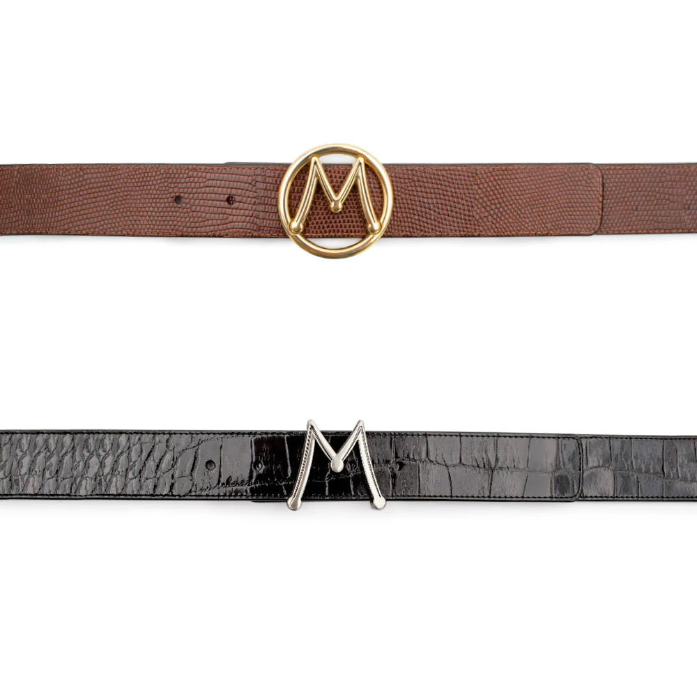 Mezlan Reversible & Interchangeable Buckle Exotic Strap Belt Black / Cognac (AO11533)