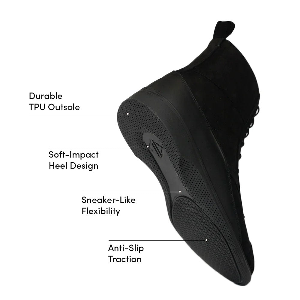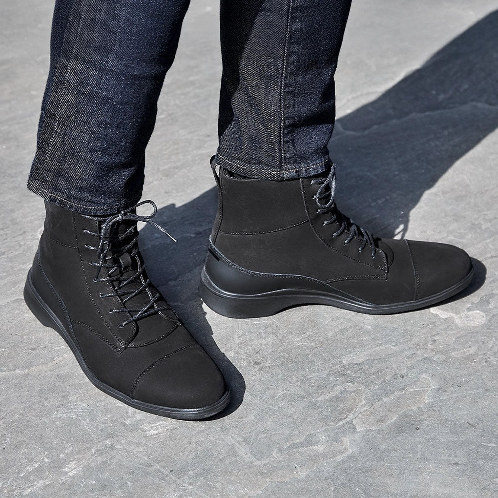 Meet The Boot by Amberjack, a modern all weather dress boot where performance meets rugged style. Crafted from water resistant A grade Italian nubuck and ethically made in Portugal, it features a soft sheepskin lining, heat activated arch support, and a responsive dual density outsole for all day comfort and traction. Lightweight yet durable with a clean, modern silhouette, The Boot is built for work, travel, and weekend wear in any condition. Fit is true to size, and if you are between sizes, we recommend sizing up.