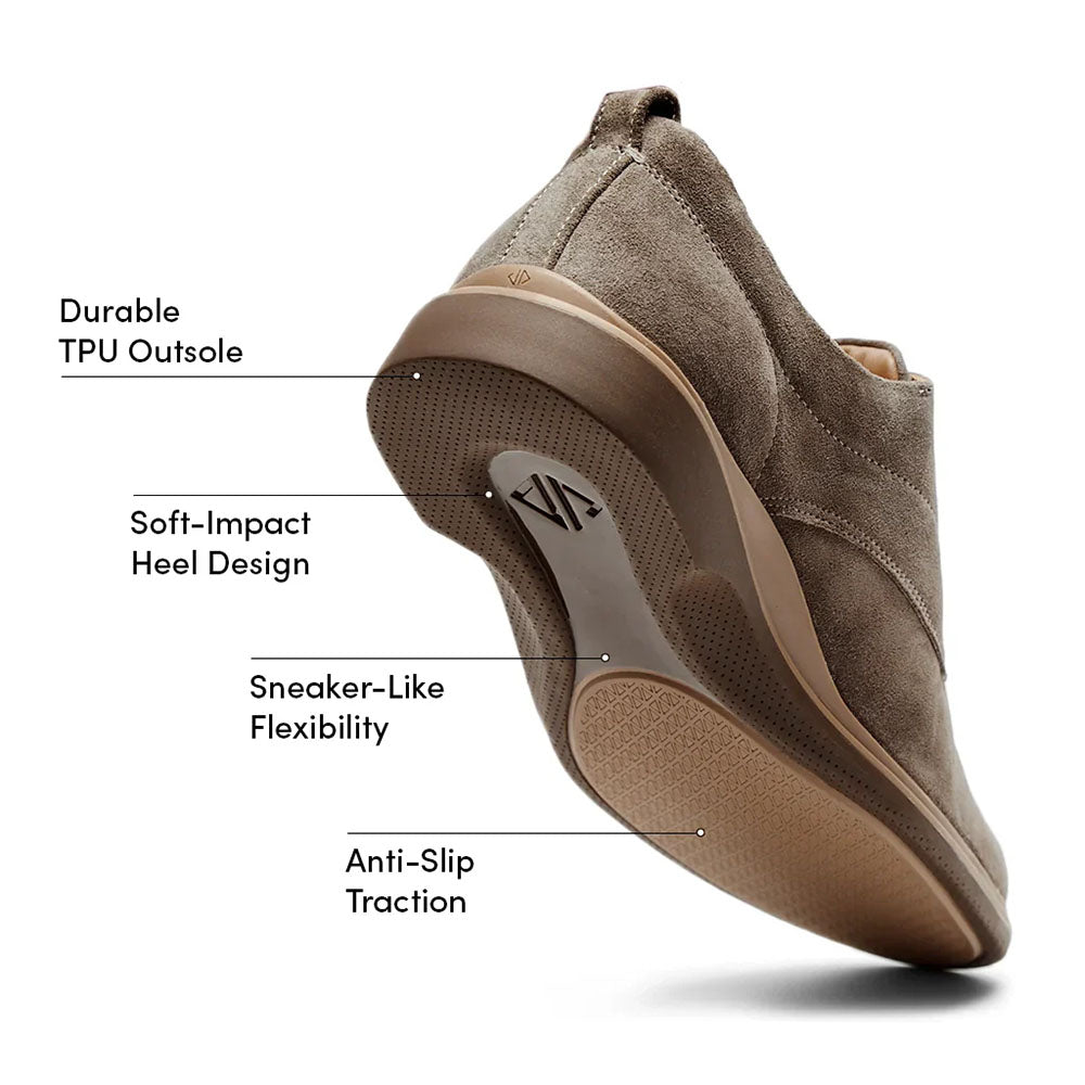 Step into all day comfort and timeless style with Amberjack’s Original Shoes, a seamless blend of classic Oxford elegance and modern functionality. Handcrafted from high quality Italian suede and sustainable materials, they feature heat activated arch support, a soft sheepskin lining, and a responsive athletic outsole for superior cushioning and stability. Designed to transition effortlessly from the office to special occasions or everyday wear, Amberjack delivers polished style with sneaker level comfort for professionals who demand versatility and performance.