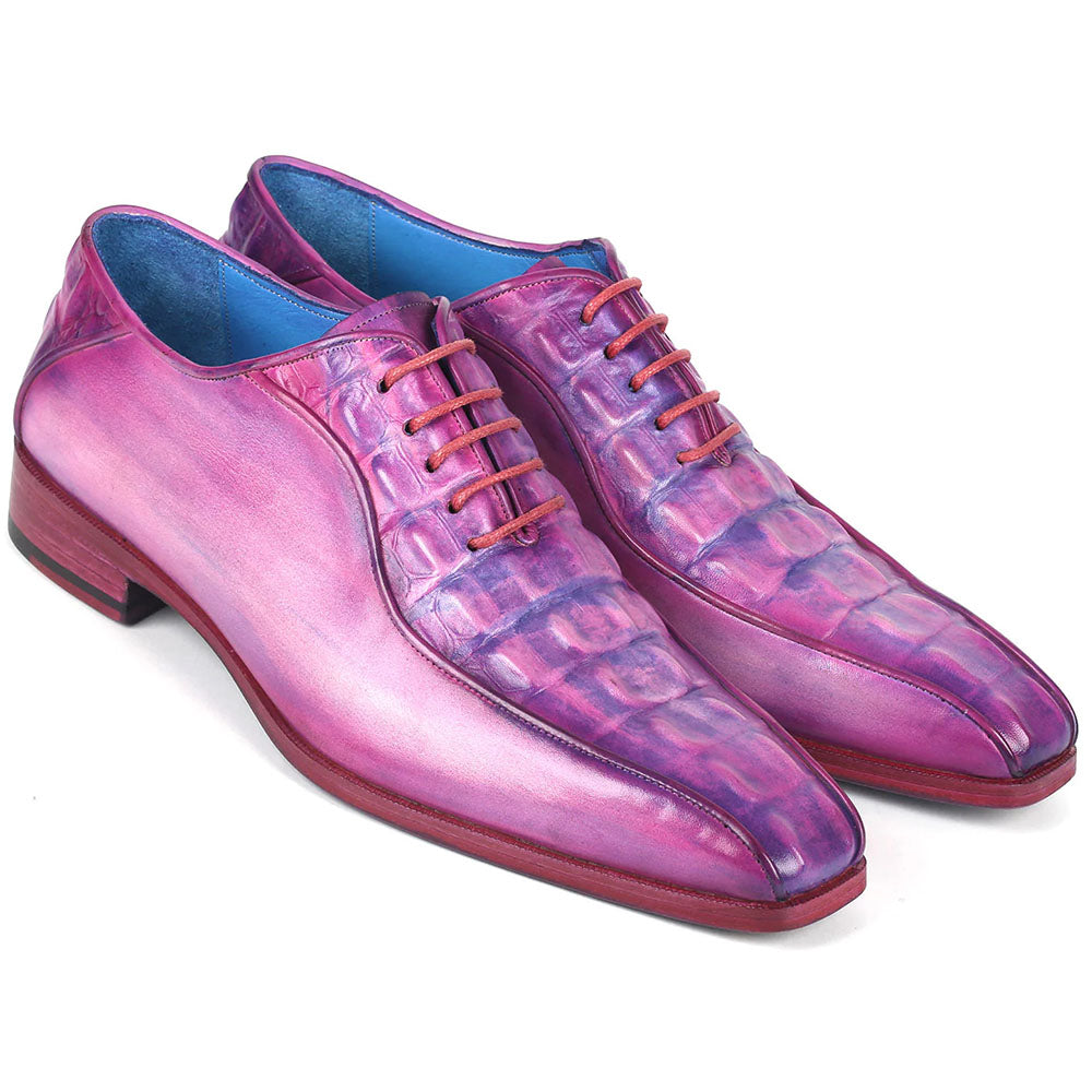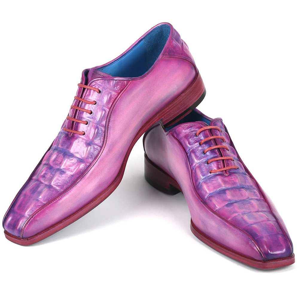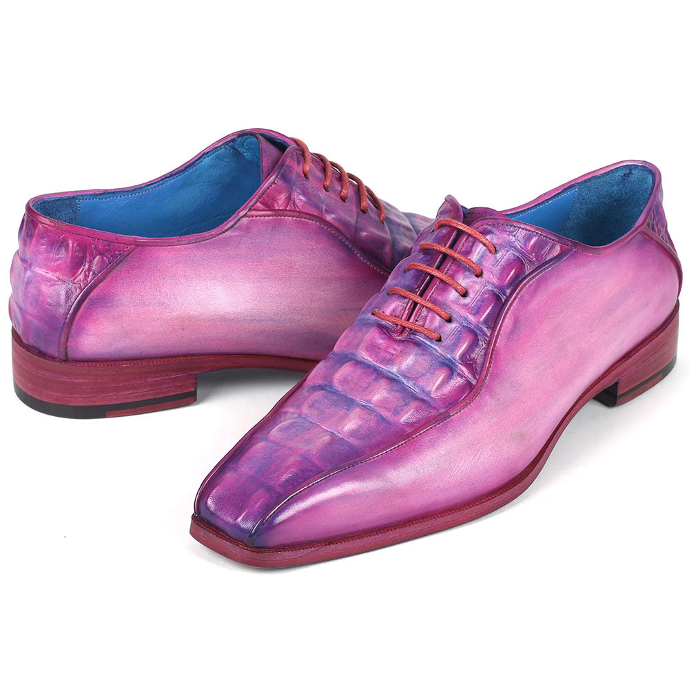 Paul Parkman Croco Textured Leather Bicycle Toe Oxfords Purple